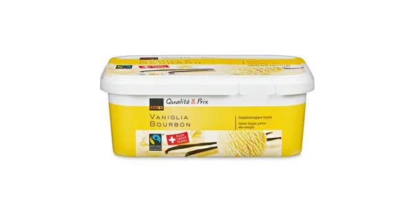 Doppelrahmglace Vanille Geniessen Sie mit der Vanille Glace Bourbon von Qualité&Prix einen Hauch von Exotik. Diese Eiscreme besticht durch ihren intensiven Vanillegeschmack und bietet ein ausgezeichnetes Preis-Leistungsverhältnis. Ideal für warme Sommertage oder als Dessert nach einem feinen Essen. – Zutaten: MAGERMILCH (Schweiz), RAHM 34% (Schweiz), Glucose, Glucosesirup, Zucker, MILCHPROTEIN, Emulgator (E 471), Verdickungsmittel (E 410,E 407), Vanilleextrakt 0,2% (Madagaskar), Vanillesamen (Madagaskar), Farbstoff (E 160a), Stärke. > Fairtrade-Zucker mit Mengenausgleich, Vanille. Gesamtanteil 21,5% ohne Milchprodukte. Mehr Info: Fairtrade-Code 1028643. www.fairtrademaxhavelaar.ch. Zutaten: MAGERMILCH (Schweiz), RAHM 34% (Schweiz), Glucose, Glucosesirup, Zucker, MILCHPROTEIN, Emulgator (E 471), Verdickungsmittel (E 410,E 407), Vanilleextrakt 0,2% (Madagaskar), Vanillesamen (Madagaskar), Farbstoff (E 160a), Stärke. > Fairtrade-Zucker mit Mengenausgleich, Vanille. Gesamtanteil 21,5% ohne Milchprodukte. Mehr Info: Fairtrade-Code 1028643. www.fairtrademaxhavelaar.ch.