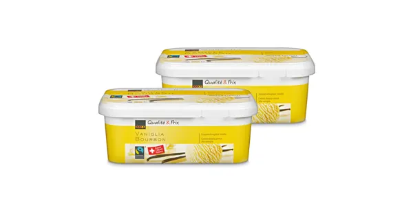 Doppelrahmglace Vanille – Zutaten: RAHM 34% (Schweiz), konzentrierte MAGERMILCH (Schweiz), MAGERMILCH (Schweiz), Glucose, Zucker, Glucosesirup, Emulgator (E 471), Stabilisatoren (E 407, E 410),...