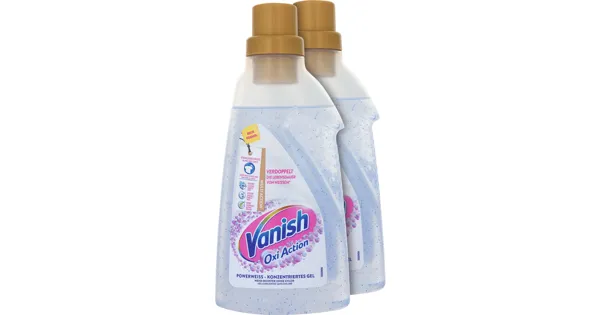 Erhalte strahlend weisse Wäsche ohne Flecken. Das Fleckenentferner Gel Powerweiss von Vanish Oxi Action macht deine Textilien schon ab der 1. Wäsche weisser. Wasserstoffperoxid setzt...