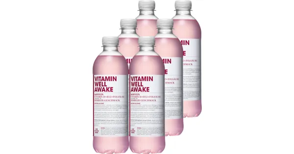 Kalorienarmes koffeinhaltiges Erfrischungsgetränk mit Himbeergeschmack, ohne Kohlensäure mit Vitaminen und Mineralien Vitamin Well Awake ist ein erfrischendes Getränk mit Koffein, Grüntee-Extrakt und Vitamin B12. Die harmonische Kombination der Zutaten sorgt für einen angenehm belebenden Genussmoment. Ideal für alle, die eine geschmackvolle Alternative zu anderen koffeinhaltigen Getränken suchen. – Zutaten: Wasser, Fruktose, Säureregulator (Citronensäure), Exktrakt aus Schwarzer Johannisbeere, Koffein, Vitamine (D3, E, Niacin, Folsäure,B12, Biotin, Patothensäure), Mineralien (Magnesium, Zink, Selen), Himbeeraroma, färbende Lebensmittel (Süsskartoffel, Apfel, Rettich, Kirsche). Zutaten: Wasser, Fruktose, Säureregulator (Citronensäure), Exktrakt aus Schwarzer Johannisbeere, Koffein, Vitamine (D3, E, Niacin, Folsäure,B12, Biotin, Patothensäure), Mineralien (Magnesium, Zink, Selen), Himbeeraroma, färbende Lebensmittel (Süsskartoffel, Apfel, Rettich, Kirsche).