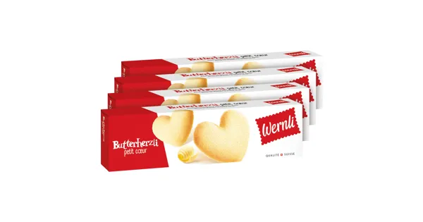 Wernli Butterherzli sind feine Gebäckstückchen in Herzform. Sie werden aus 100% Schweizer Butter und aus Eiern aus Freilandhaltung hergestellt. Ohne künstliche Aromen, Konservierungsmittel und...