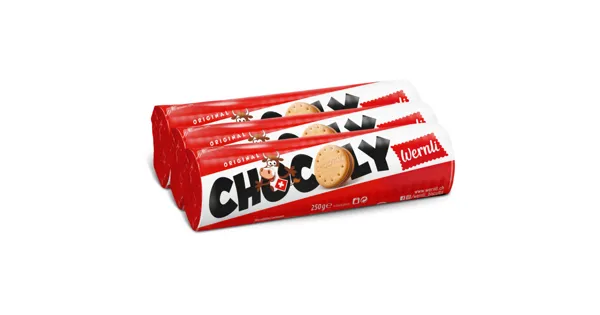 Biscuit mit Schokoladecrème-Füllung (34 %) Biscuit mit Schokoladecrème-Füllung. – Zutaten: WEIZENMEHL, Zucker, Pflanzenfett/-öl ungehärtet (Palm, Kokos), Kakaopulver fettarm, Maisstärke,...