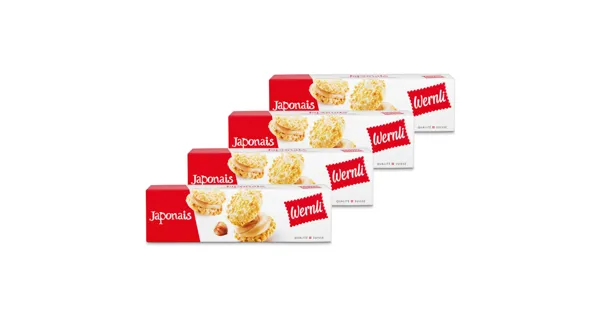 Mandel-Eiweissgebäck mit Haselnusscrème-Füllung (46 %) – Zutaten: Zucker, MANDELN 14 %, Pflanzenfett/-öl ungehärtet (Palm, Kokos, Raps), WEIZENMEHL, HASELNÜSSE 6 %, Maisstärke, Reisstärke,...