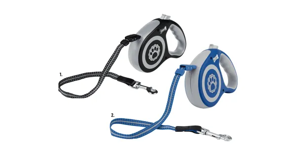 Ergonomischer Griff mit weichem Komfort-Einsatz , Mit Aufrollfunktion, Stopp- und Arretierungstaste , 5 m Leine , Für Hunde bis max. 20 kg , Für Hunde bis max. 35 kg , Pro Stück