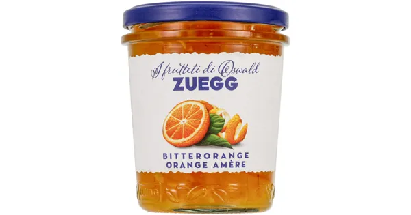 Bitterorangenmarmelade – Zutaten: Zucker, Bitterorangen, Geliermittel: Pektin. Hergestellt aus 30 g Früchten je 100 g Fertigprodukt. Mit Schalen in Streifen. Zutaten: Zucker, Bitterorangen, Geliermittel: Pektin. Hergestellt aus 30 g Früchten je 100 g Fertigprodukt. Mit Schalen in Streifen.