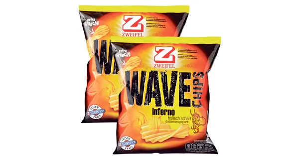 Kartoffelchips In dieser Limited Edition hat das Wave-Teufelchen seinen Zweizack noch etwas länger in die Gewürzflammen gehalten und in jeder Tüte eine Handvoll ultrascharfe Chips versteckt....